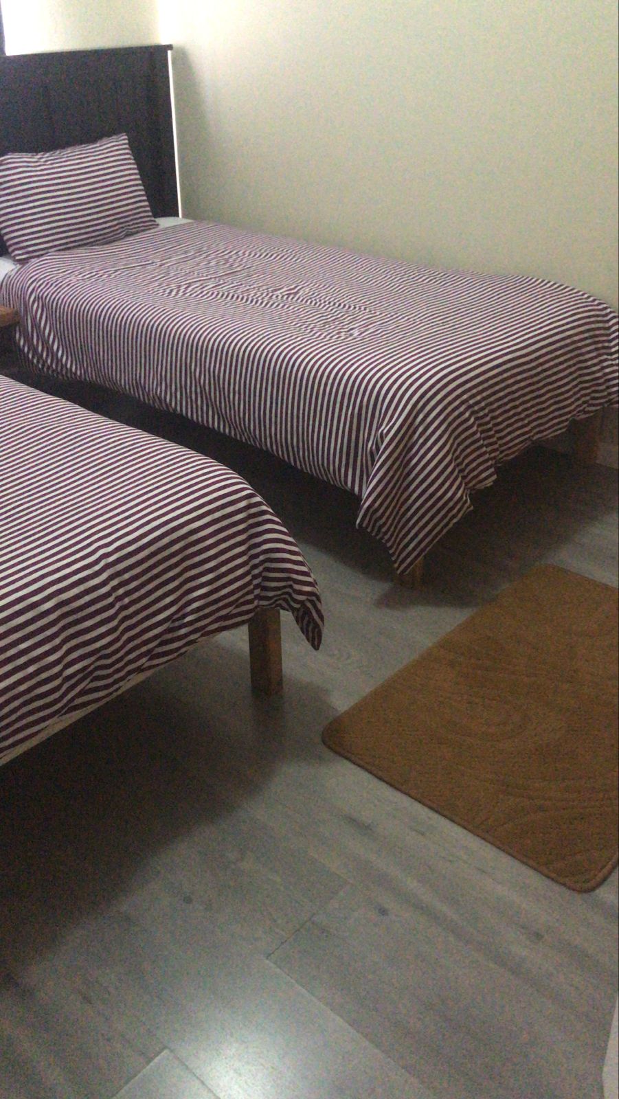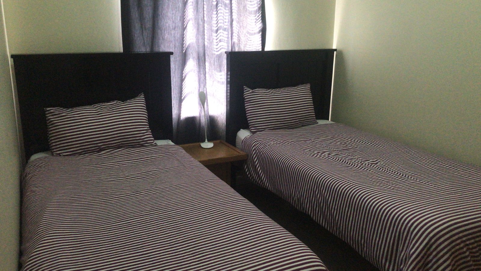 The main bedroom has a queen bed and the second room has 2 single beds. These 2 bedrooms are on the ground floor as well as the bathrooms. The third bedroom is located on the top level and has 2 three-quarter beds and a sleeper couch.